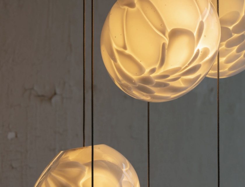 The internal light source is recessed deep within the glass and emits a soft, diffuse glow bringing the form quietly to life. The 118 series is designed to be used in multiples as playful clusters, in linear compositions, or as large installations that cascade like a gentle rainfall through the room.