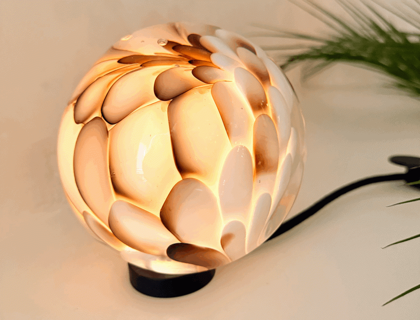 Within it glows a warm core, deeply recessed in the hollow form casting light softly, almost from within.