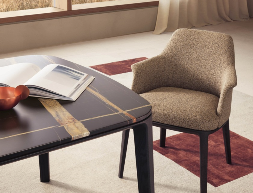 Deze vloeiende overgang wordt gerealiseerd door een verfijnde chromatische combinatie van meubels en natuurlijke elementen. Warme houttinten, zachte texturen en subtiele kleurnuances creëren een gebalanceerde en verfijnde sfeer. De aanwezigheid van natuurlijke materialen, zoals hout en steen, voegen een extra dimensie toe aan de ruimte, waardoor de eetkamer een rustgevende en uitnodigende uitstraling krijgt.